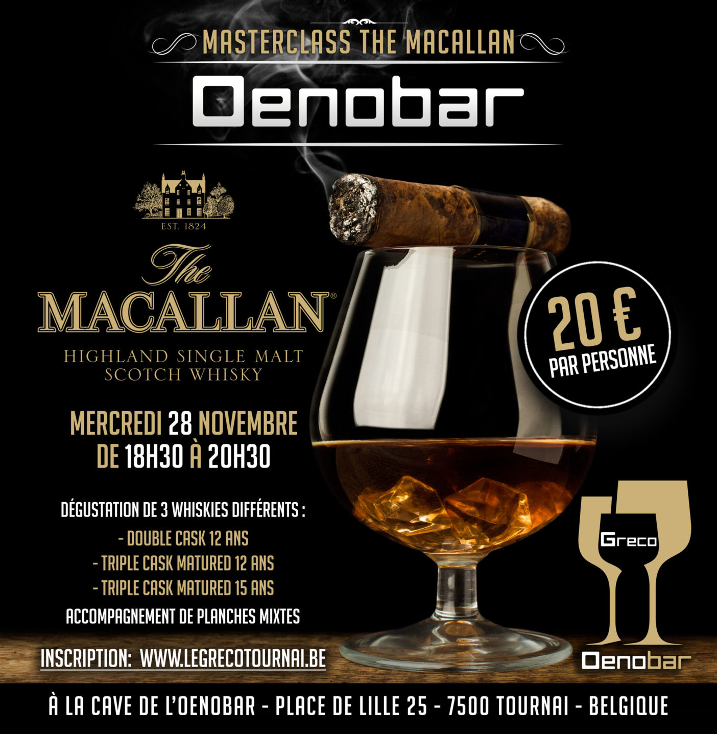 L’OenoBar a l’honneur de recevoir Carl Van Droogenbroeck dans son atypique cave voûtée, un des meilleurs barmen du monde (top 34 du concours «World Class bartender of the Year» en 2013) et ambassadeur officiel «The Macallan». Il nous partagera son savoir et proposera, autour de plusieurs plateaux charcuteries-fromages, une dégustation de 3 whiskies d’excellence: